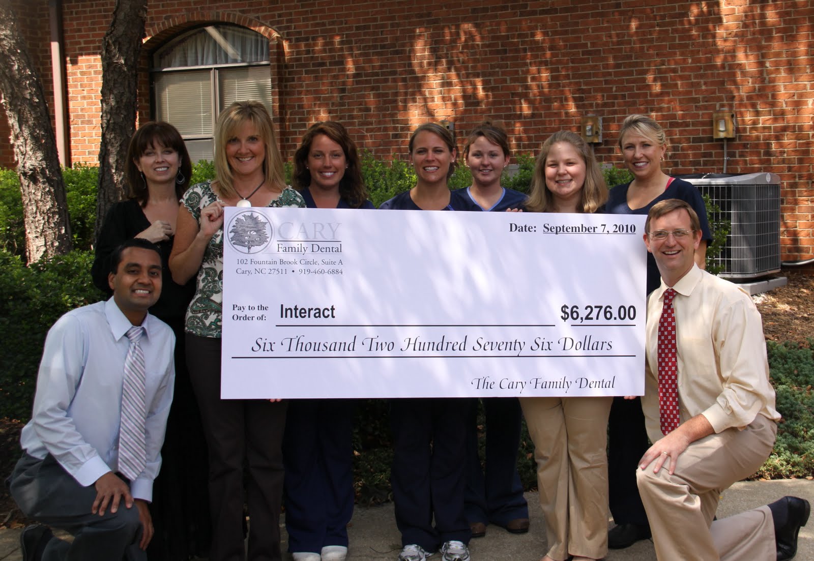 Dr. Acton and Cary Family Dental are committed to our Cary, NC community. This year, we were able to donate $6,276 towards InterAct, a United Way organization that provides safety, support, and awareness to victims and survivors of domestic violence and rape/sexual assault. InterAct offers many valuable services to our community, including youth education services, a residential shelter, 24 hour crisis lines, and rape prevention services, among others. Last year, Cary Family Dental donated $9493 to InterAct, for a total of $15,769 in the last two years.